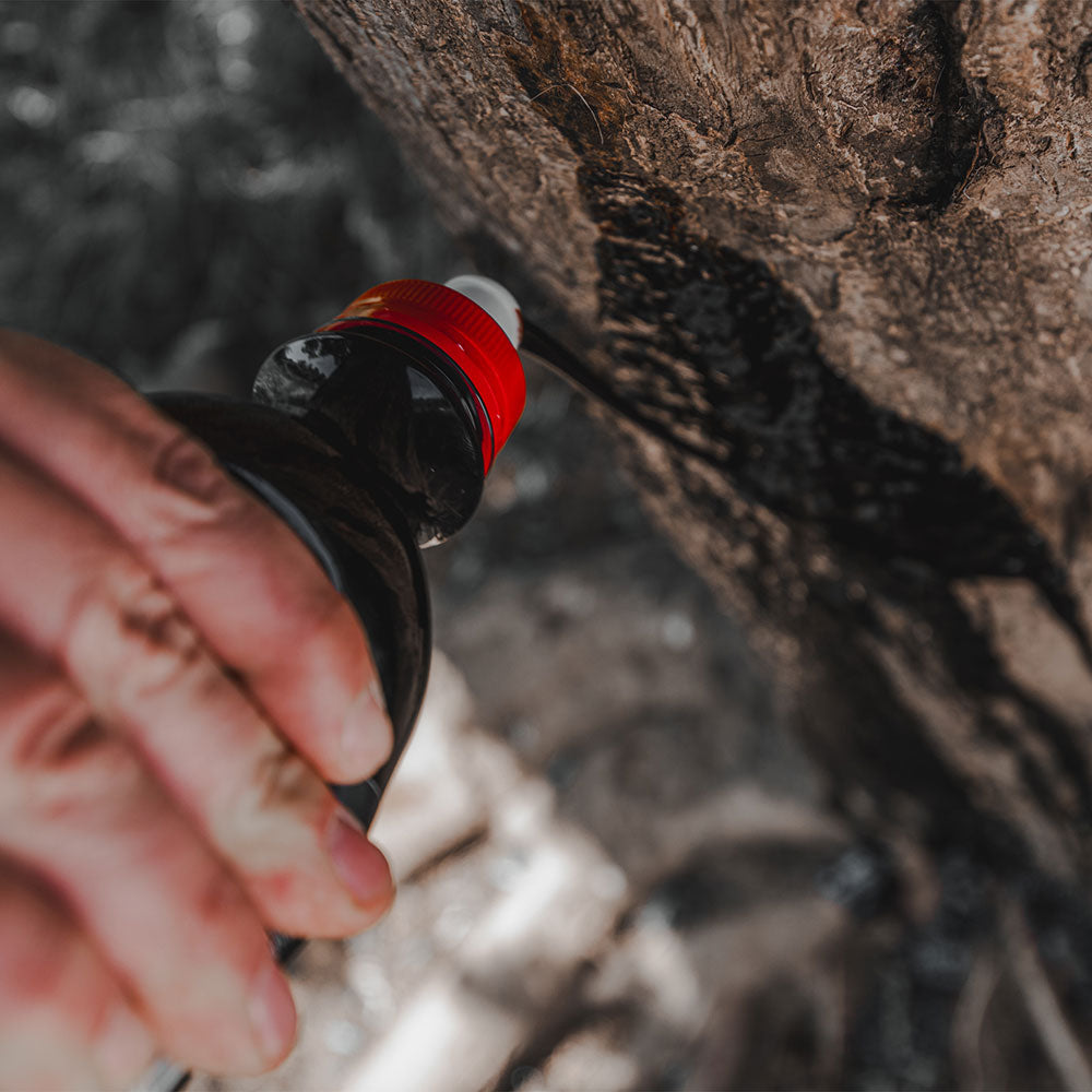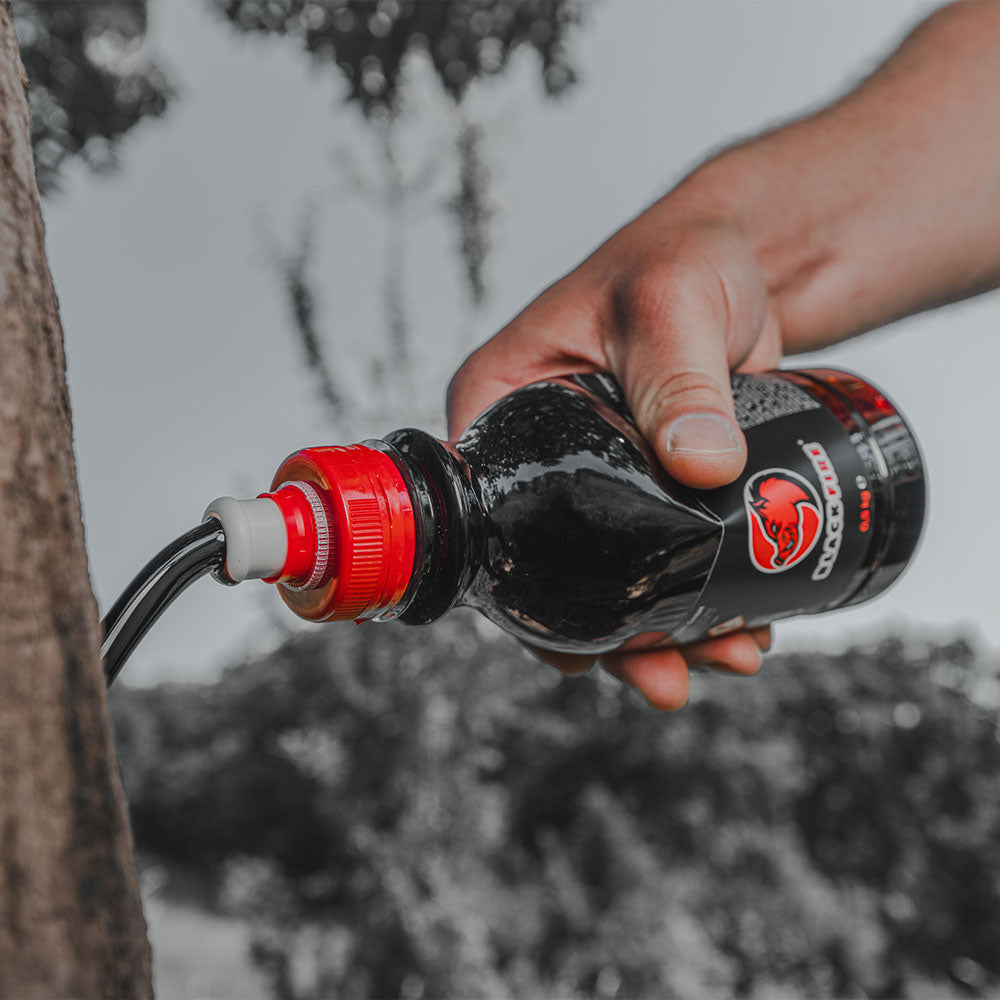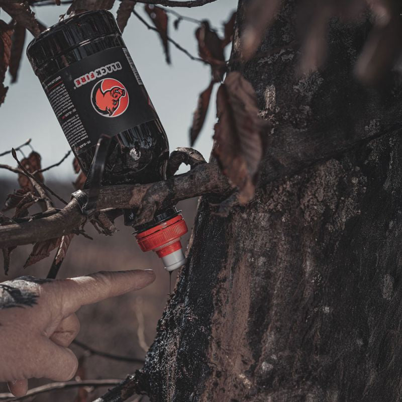Eine Flasche Black Fire reicht für genau eine Anwendung. Um die maximale Wirkung zu erzielen, wird der Lockstoff etwa 1,5 Meter über dem Boden direkt auf einen geigneten Baumstam (Totholz) gegossen. Die flüssige Konsistenz sorgt dafür, dass der Black Fire Tar tief in die Rinde einzieht und seinen intensiven Duft über eine lange Zeit verteilt.